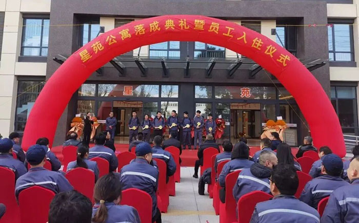 慶典現(xiàn)場,大家興高采烈,共同見證。首先由項目執(zhí)行小組代表和安環(huán)與設(shè)備部代表分別就項目實施情況和安全環(huán)保情況進行了匯報。隨后,董事長發(fā)表了熱情洋溢的講話,感謝為星苑建設(shè)付出心血的團隊及合作伙伴,祝賀每一位入住員工的“喬遷之喜”,真誠表達了公司的關(guān)愛之情,期待入住員工在幸福安居的同時,與公司同奮斗共成長,奔赴更廣闊的星辰大海!